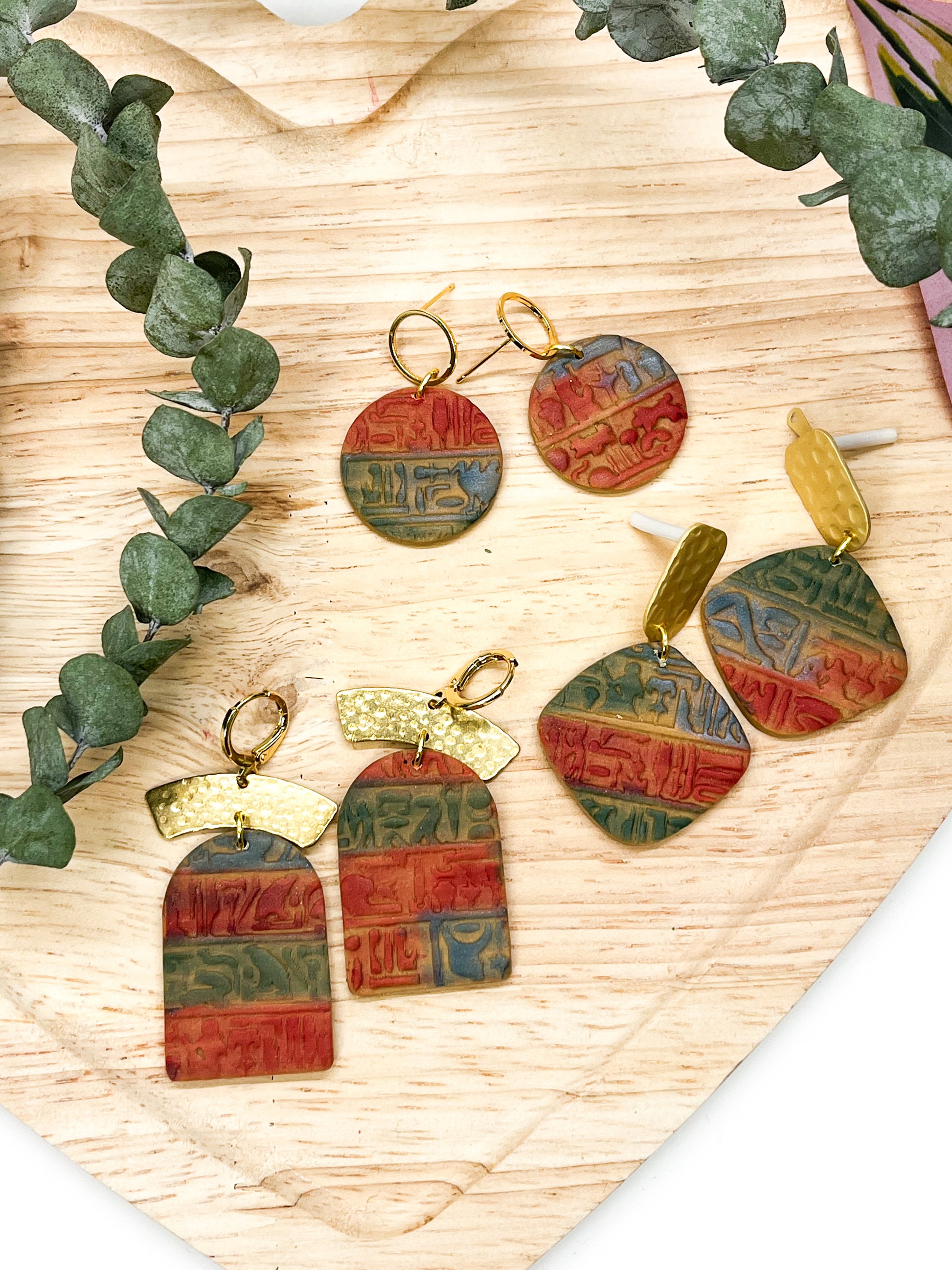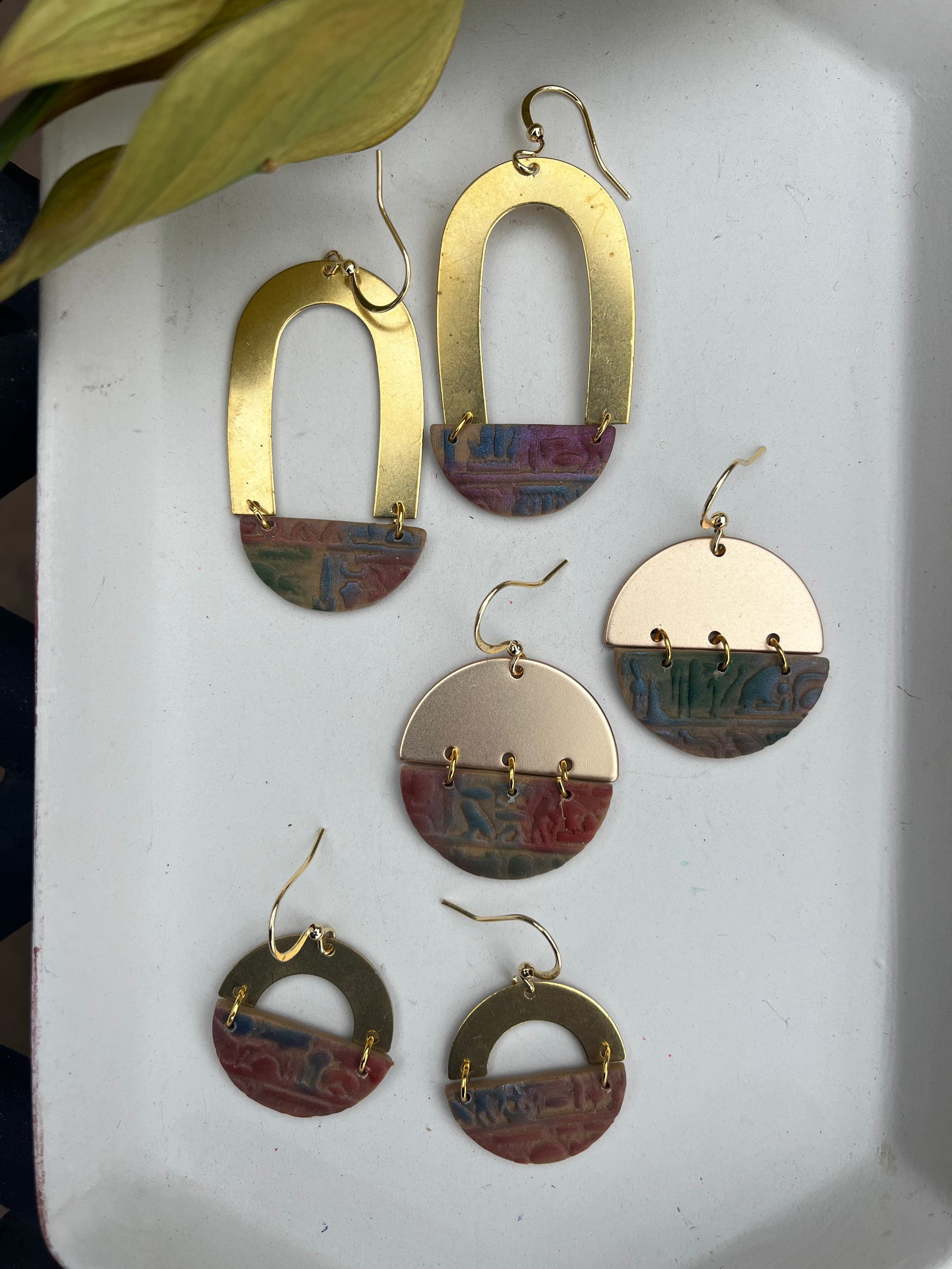 Artistically modern hand-made polymer clay earrings, made in central Pennsylvania. Perfect for causal, everyday wear that is simple, trendy, and distinct. They are lightweight, so much so that you might forget you are wearing them. They are made slowly and carefully by hand. Perfection is not my priority, but detail is. There may be minor flaws that add character and charm to our handmade pieces. Additionally, the piece you receive may not look identical to the one pictured as variations in the slab may create unique pieces.