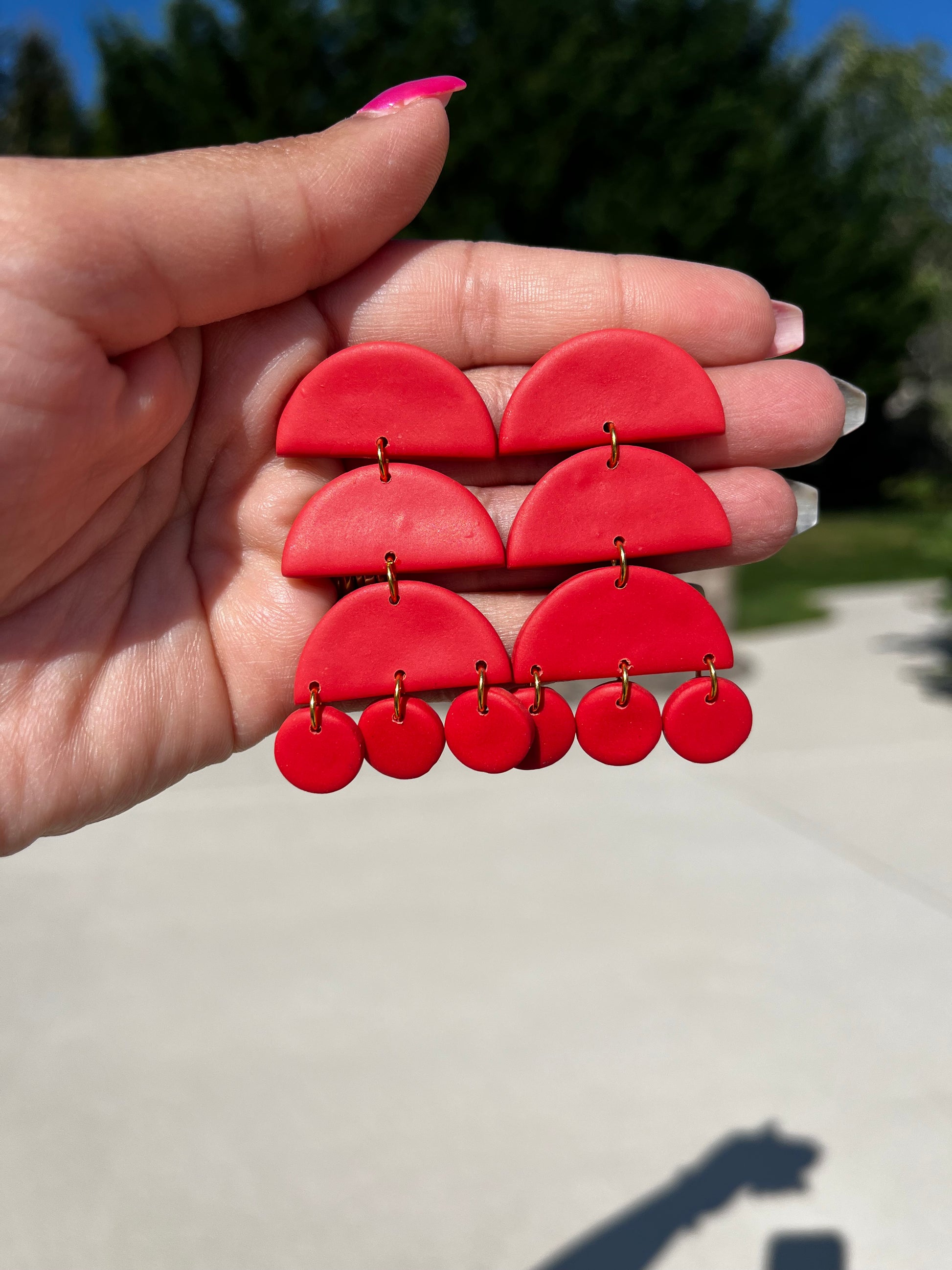 Artistically modern hand-made polymer clay earrings, made in central Pennsylvania. Perfect for causal, everyday wear that is simple, trendy, and distinct. They are lightweight, so much so that you might forget you are wearing them. They are made slowly and carefully by hand. Perfection is not my priority, but detail is. There may be minor flaws that add character and charm to our handmade pieces. Additionally, the piece you receive may not look identical to the one pictured as variations in the slab may create unique pieces.