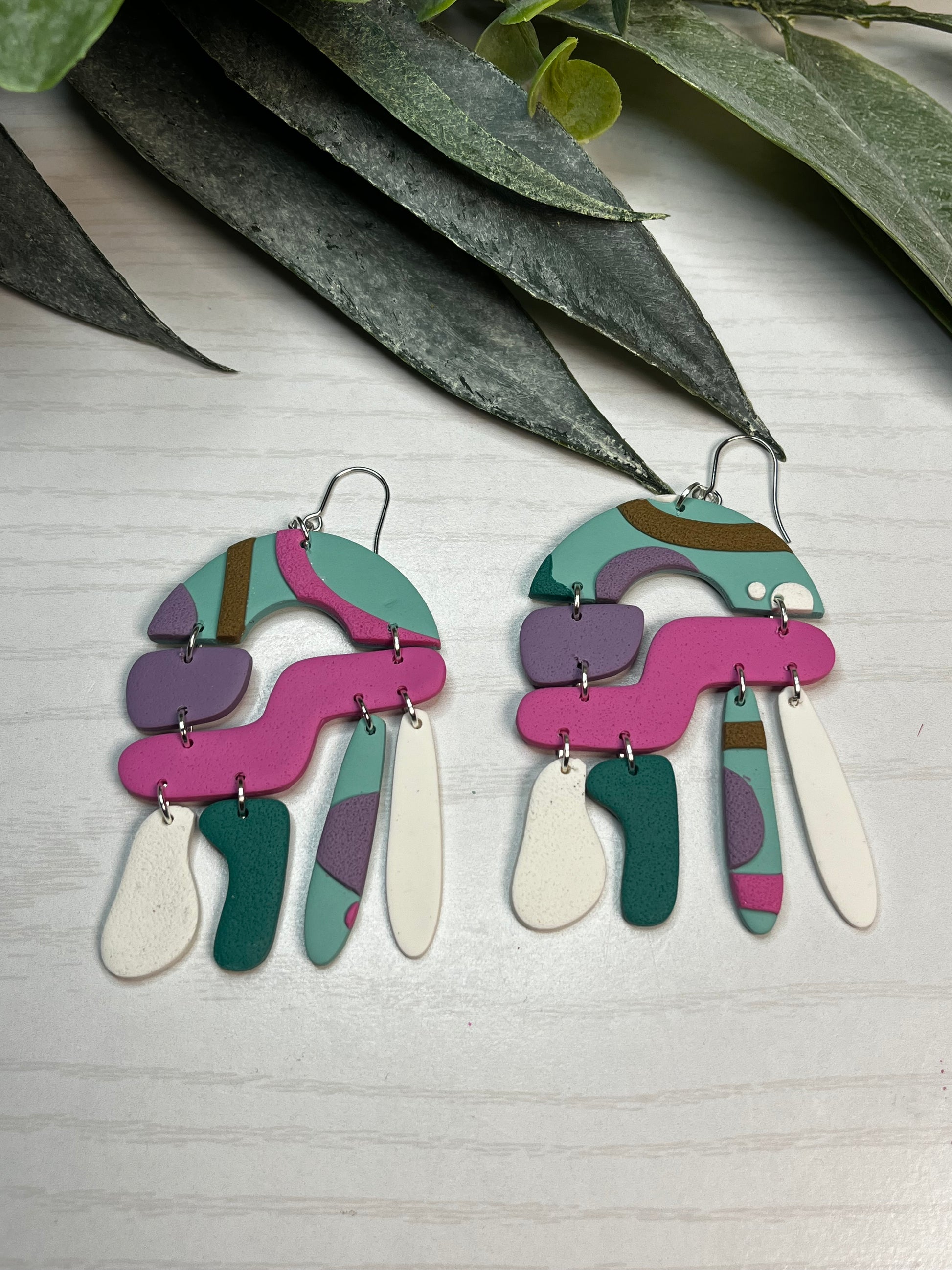 Artistically modern hand-made polymer clay earrings, made in central Pennsylvania. Perfect for causal, everyday wear that is simple, trendy, and distinct. They are lightweight, so much so that you might forget you are wearing them. They are made slowly and carefully by hand. Perfection is not my priority, but detail is. There may be minor flaws that add character and charm to our handmade pieces. Additionally, the piece you receive may not look identical to the one pictured as variations in the slab may create unique pieces.