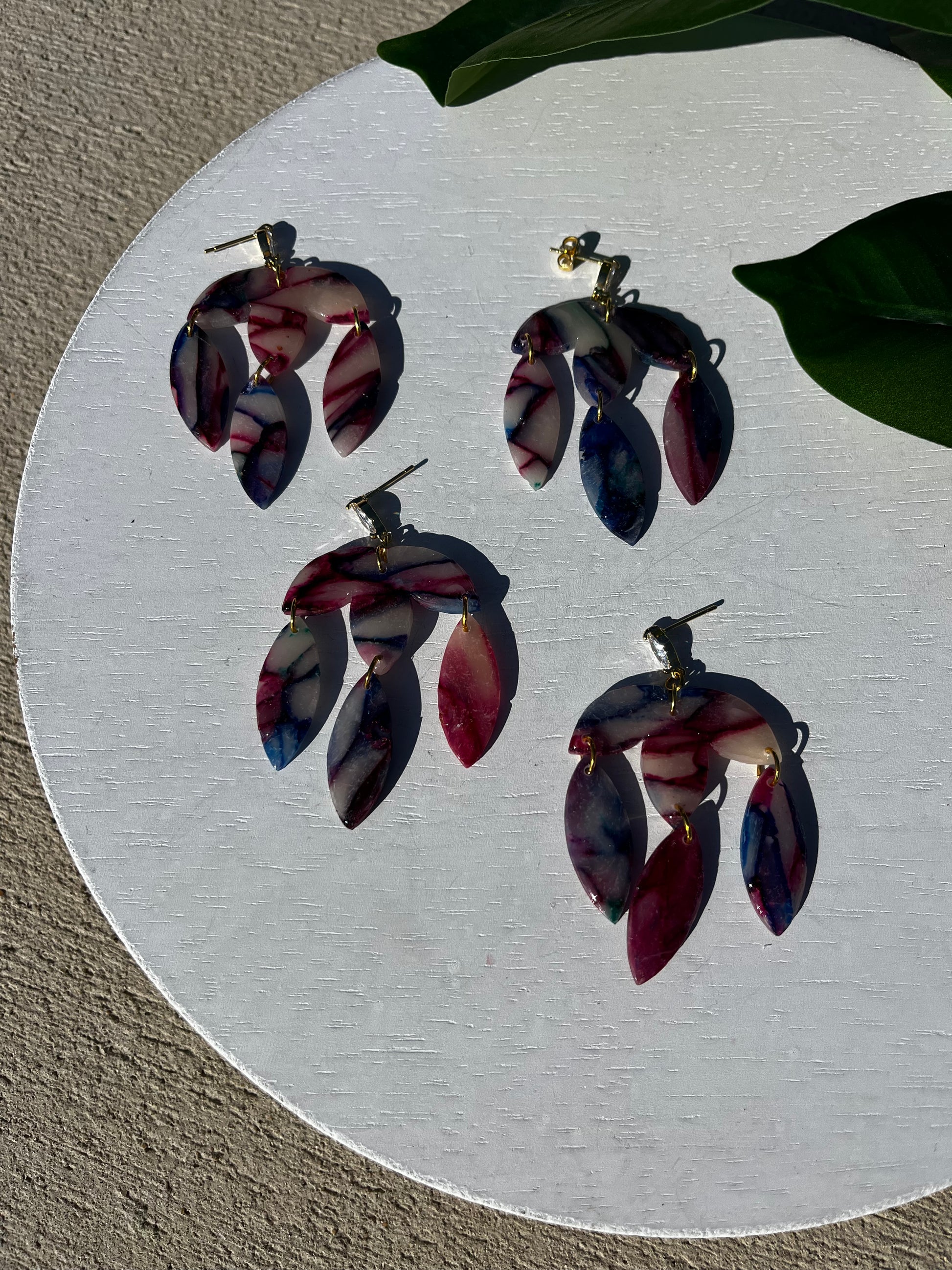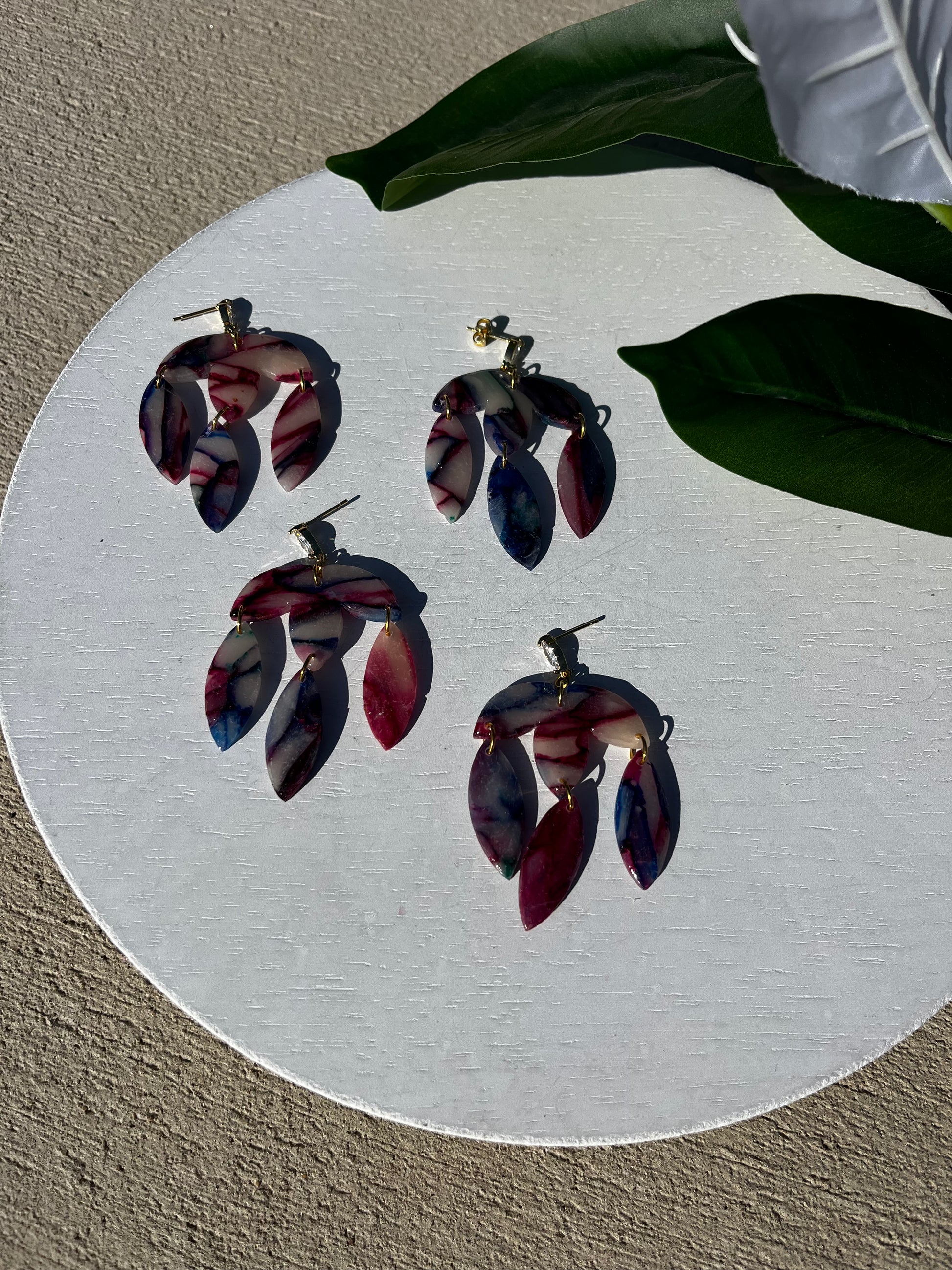 polymer clay earrings, made in central Pennsylvania. Perfect for causal, everyday wear that is simple, trendy, and distinct. They are lightweight, so much so that you might forget you are wearing them. They are made slowly and carefully by hand. Perfection is not my priority, but detail is. There may be minor flaws that add character and charm to our handmade pieces. Additionally, the piece you receive may not look identical to the one pictured as variations in the slab may create unique pieces.