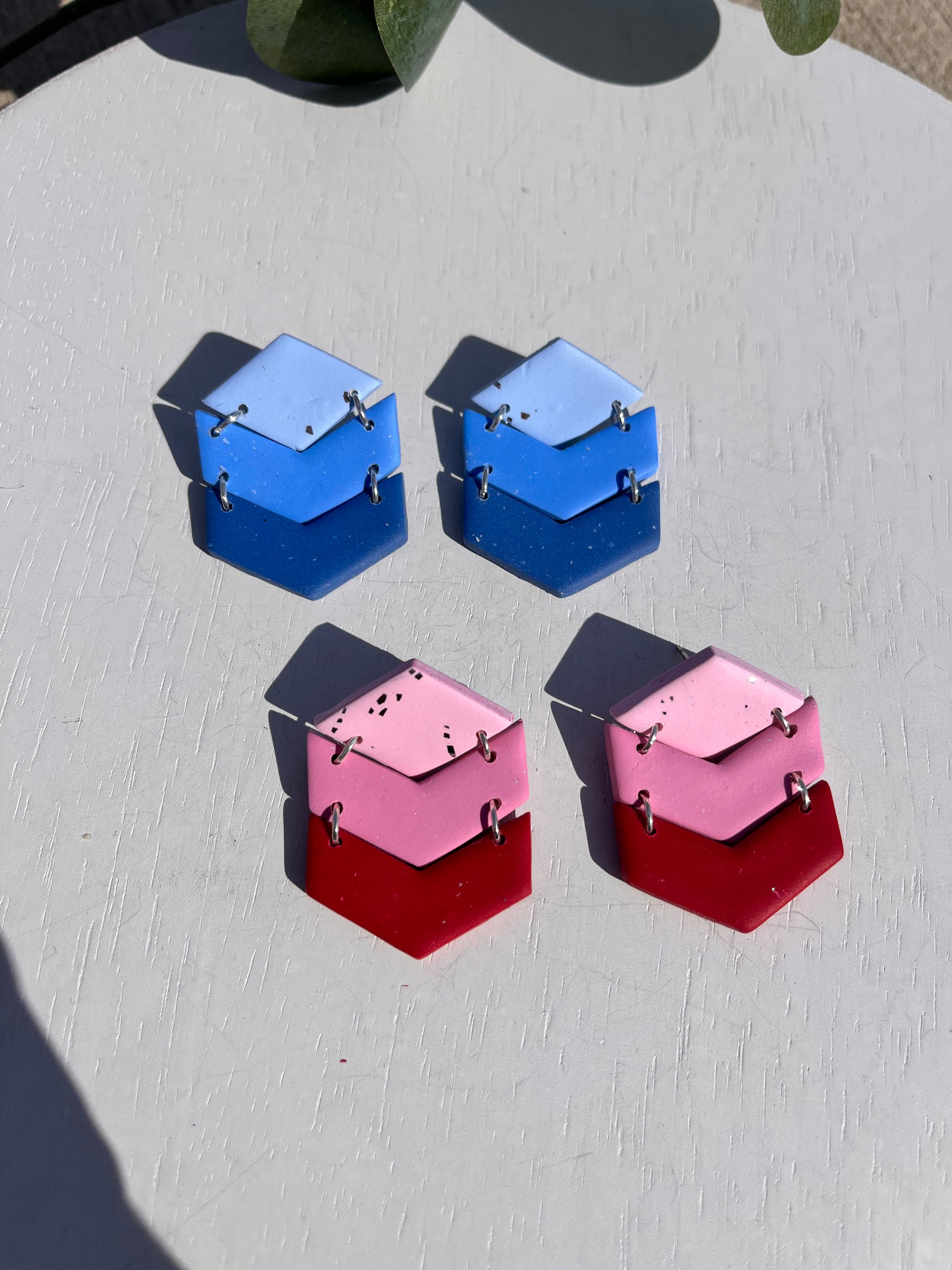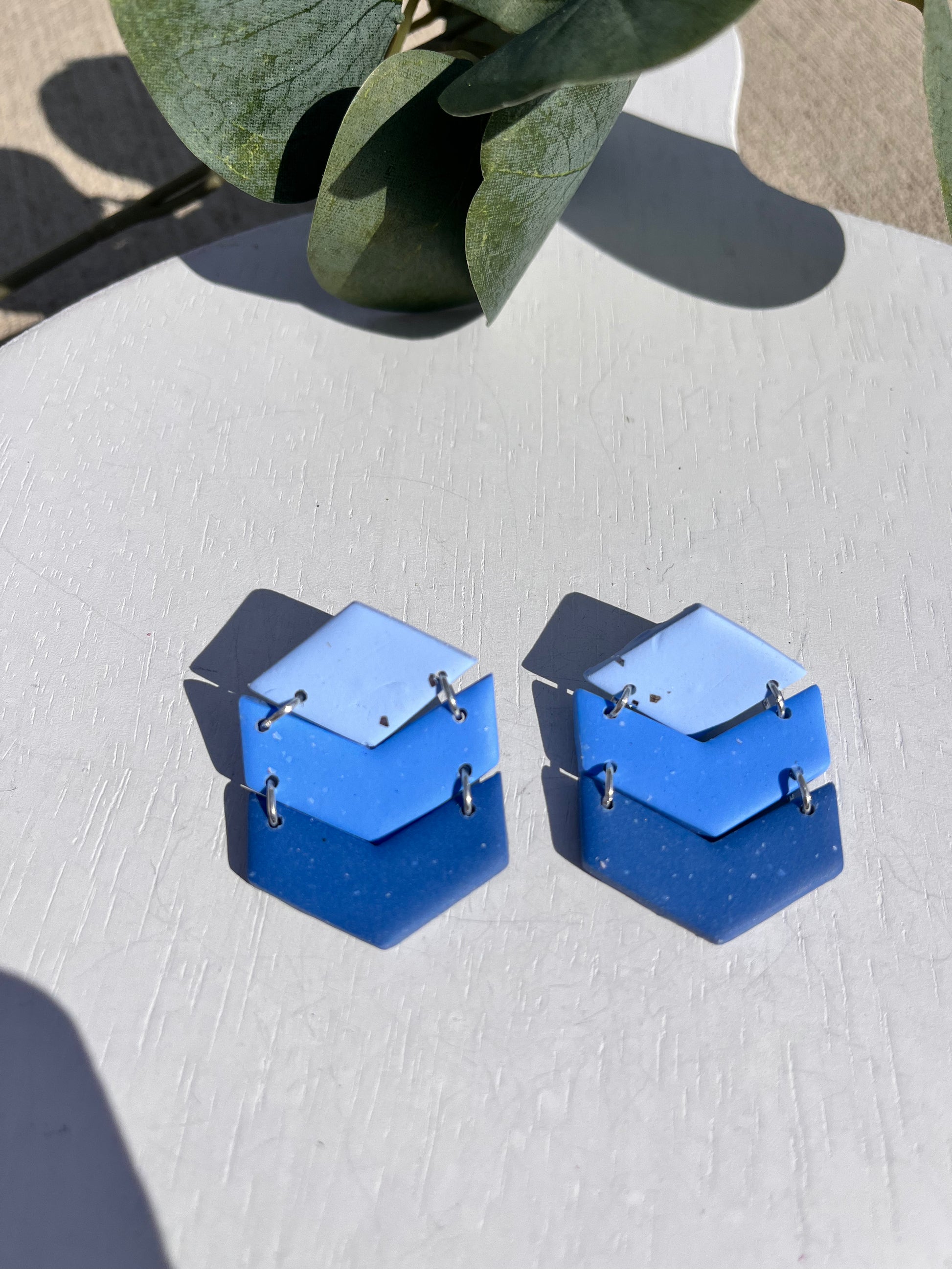 Artistically modern hand-made polymer clay earrings, made in central Pennsylvania. Perfect for causal, everyday wear that is simple, trendy, and distinct. They are lightweight, so much so that you might forget you are wearing them. They are made slowly and carefully by hand. Perfection is not my priority, but detail is. There may be minor flaws that add character and charm to our handmade pieces. Additionally, the piece you receive may not look identical to the one pictured as variations in the slab may create unique pieces.
