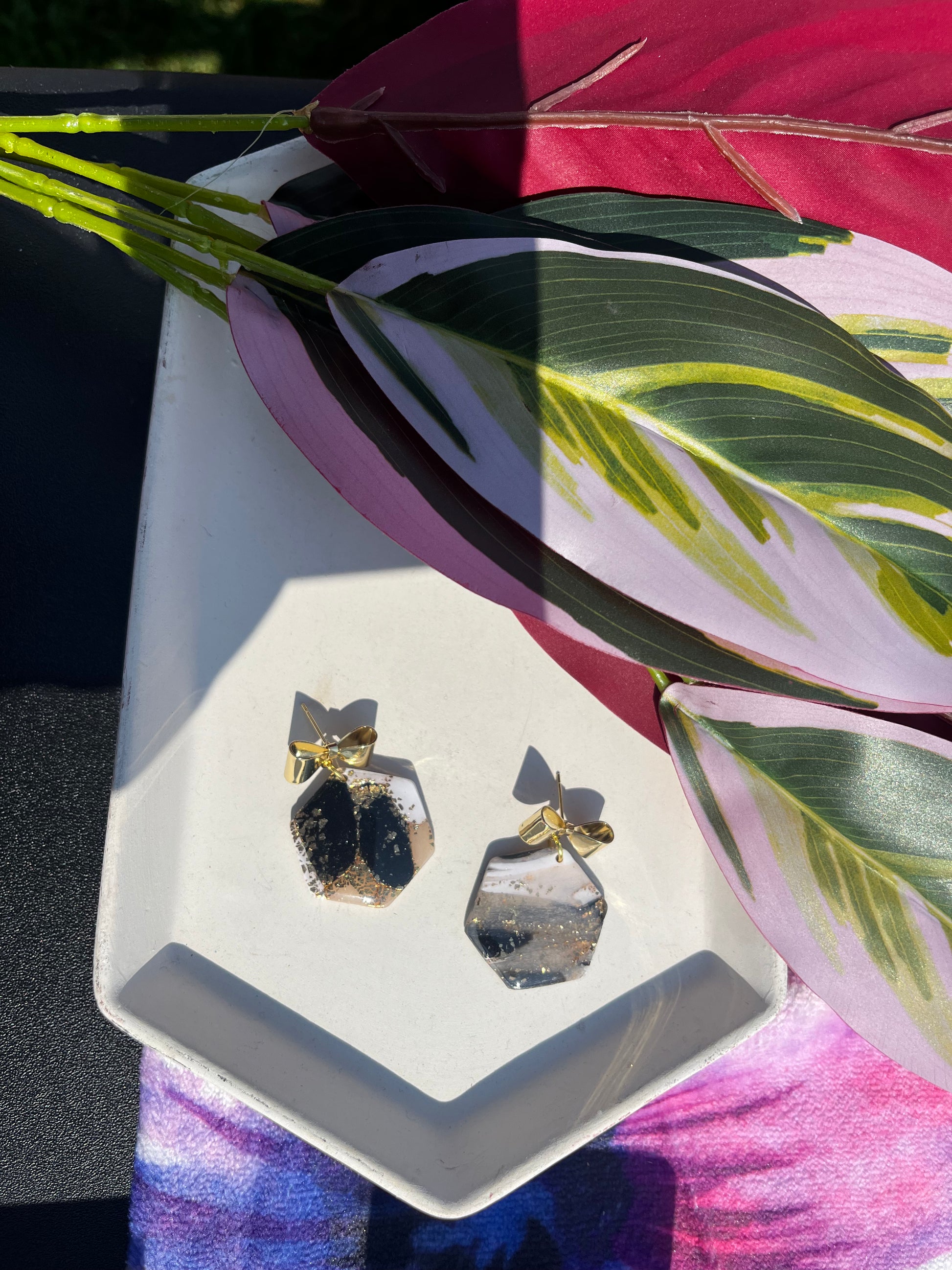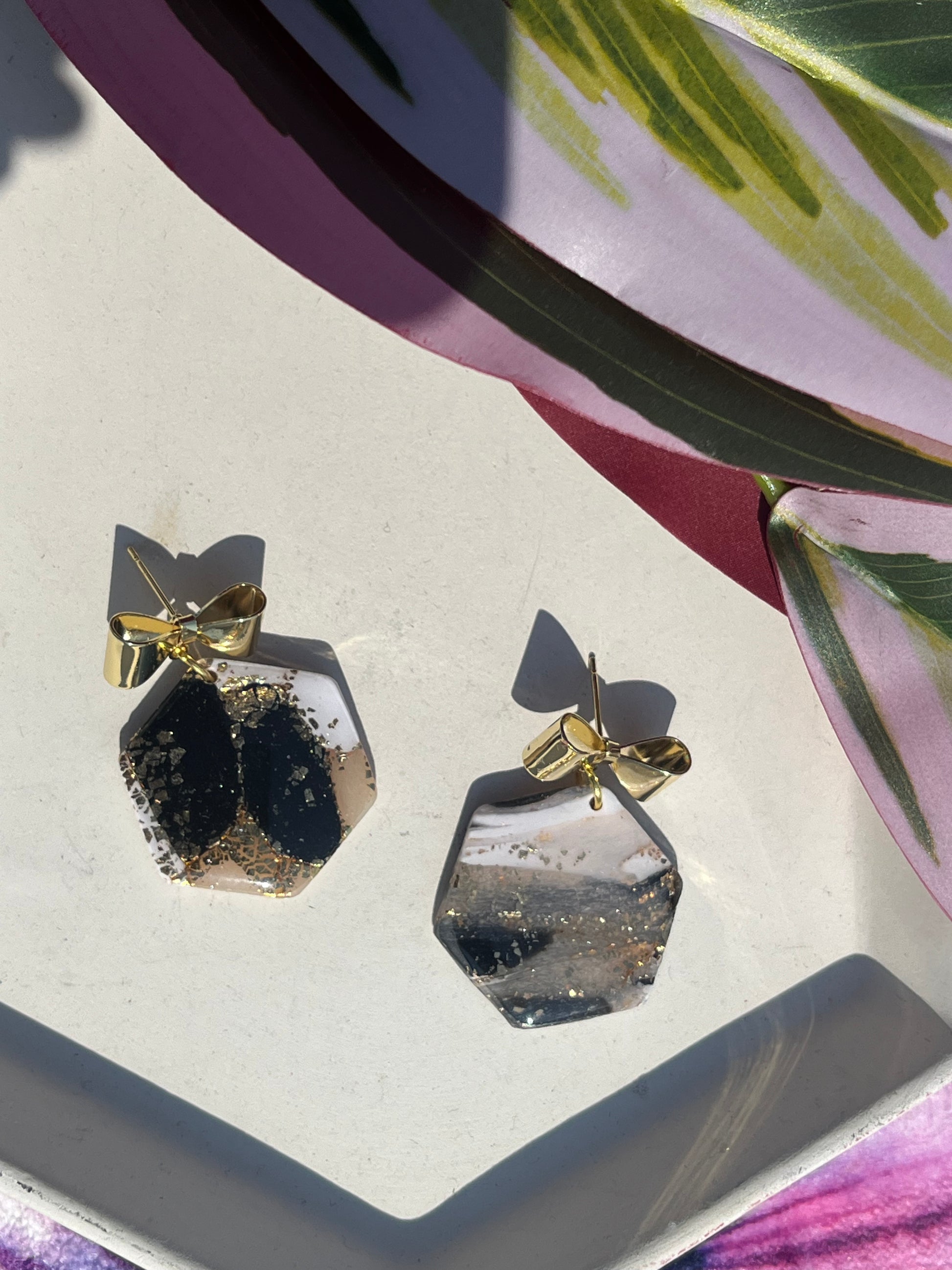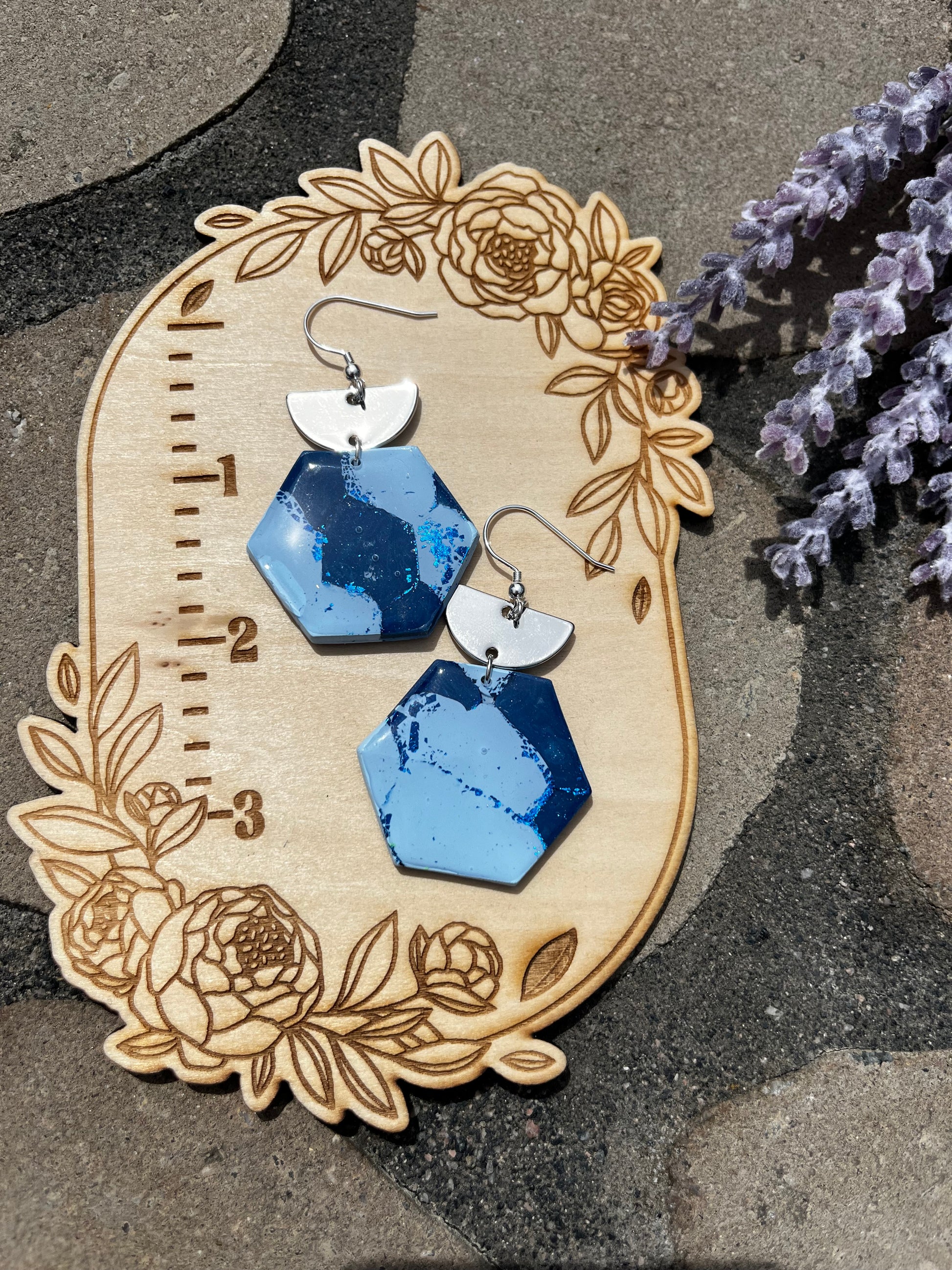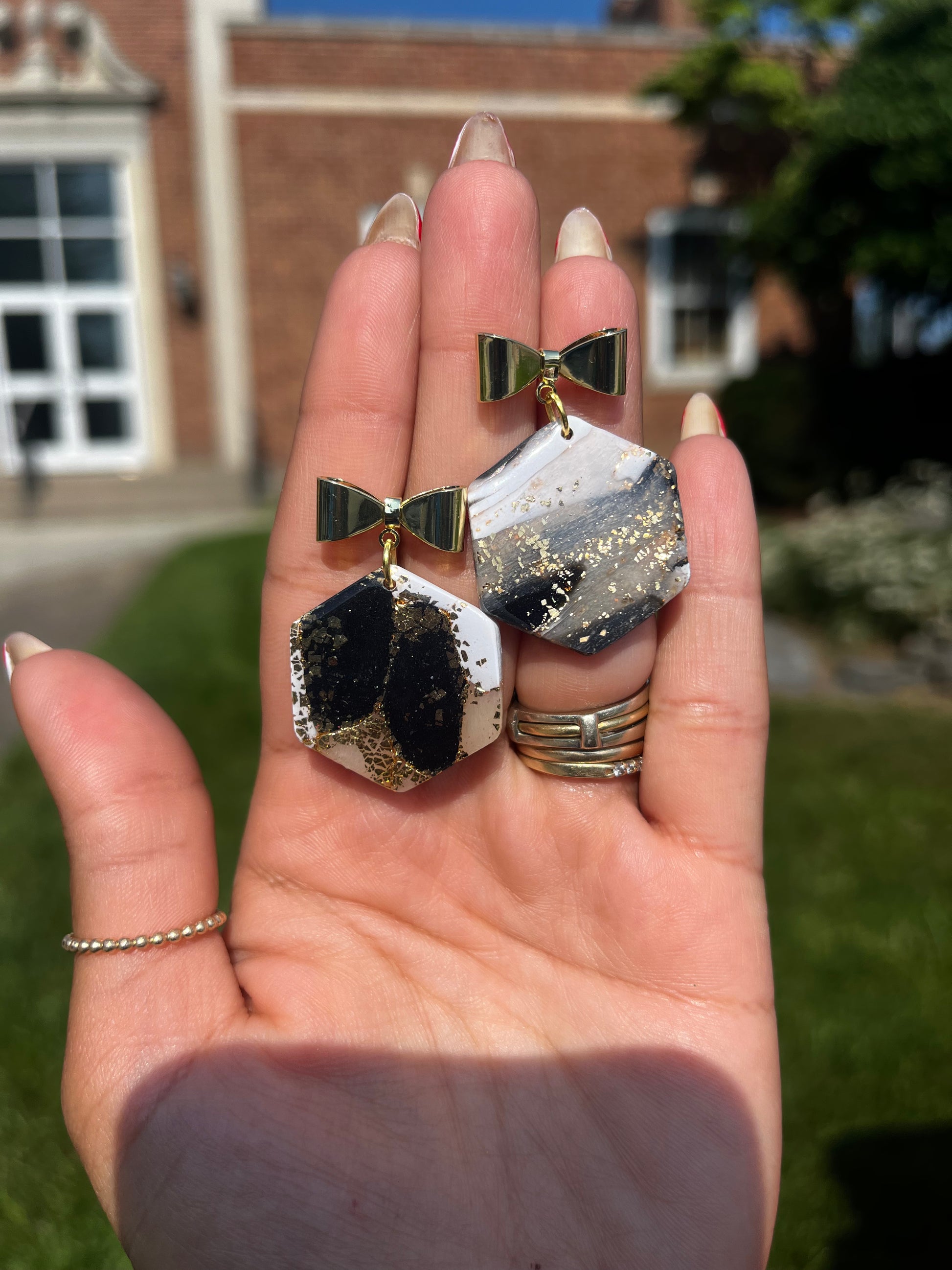 Artistically modern hand-made polymer clay earrings, made in central Pennsylvania. Perfect for causal, everyday wear that is simple, trendy, and distinct. They are lightweight, so much so that you might forget you are wearing them. They are made slowly and carefully by hand. Perfection is not my priority, but detail is. There may be minor flaws that add character and charm to our handmade pieces. Additionally, the piece you receive may not look identical to the one pictured as variations in the slab may create unique pieces.
