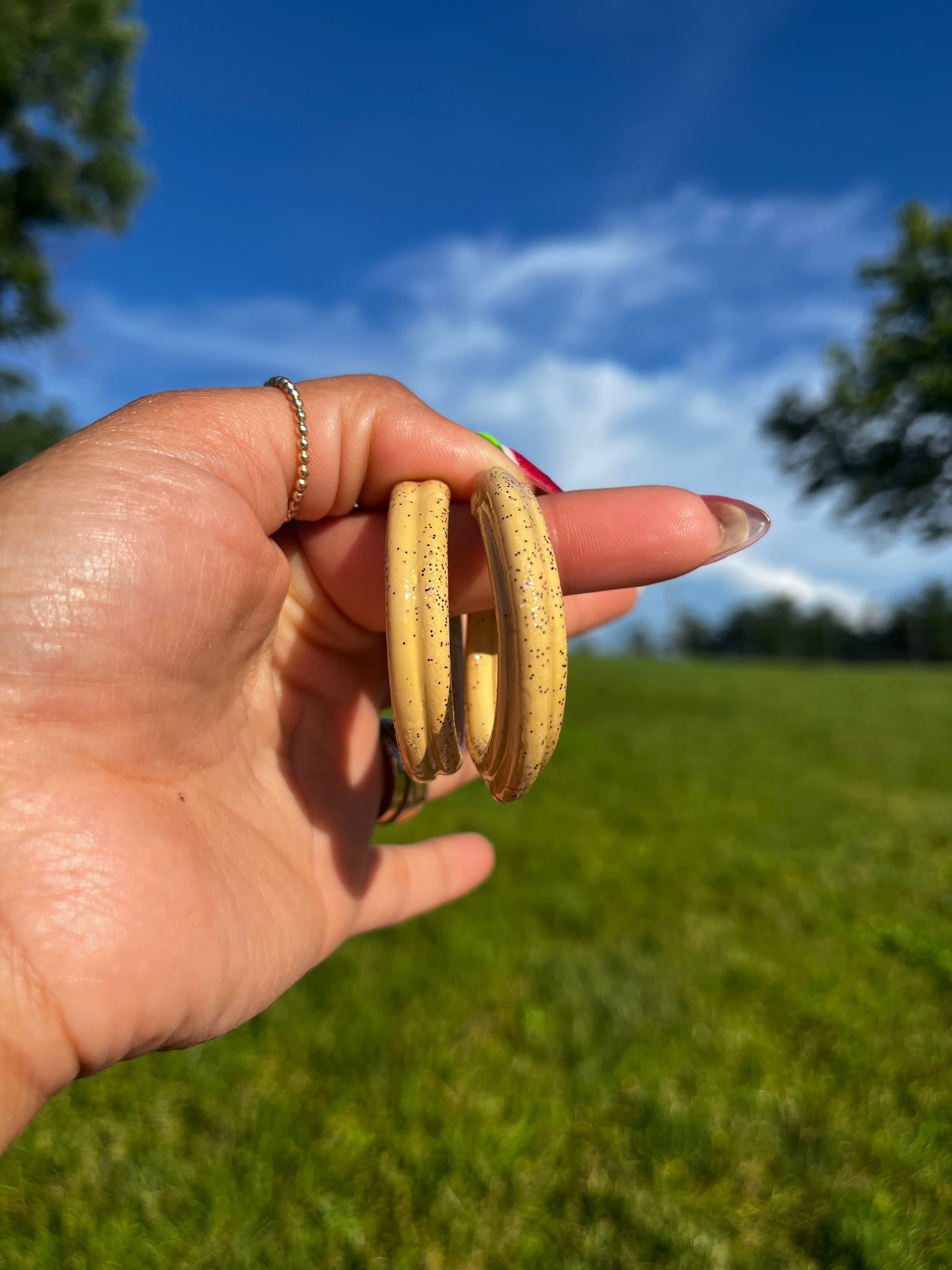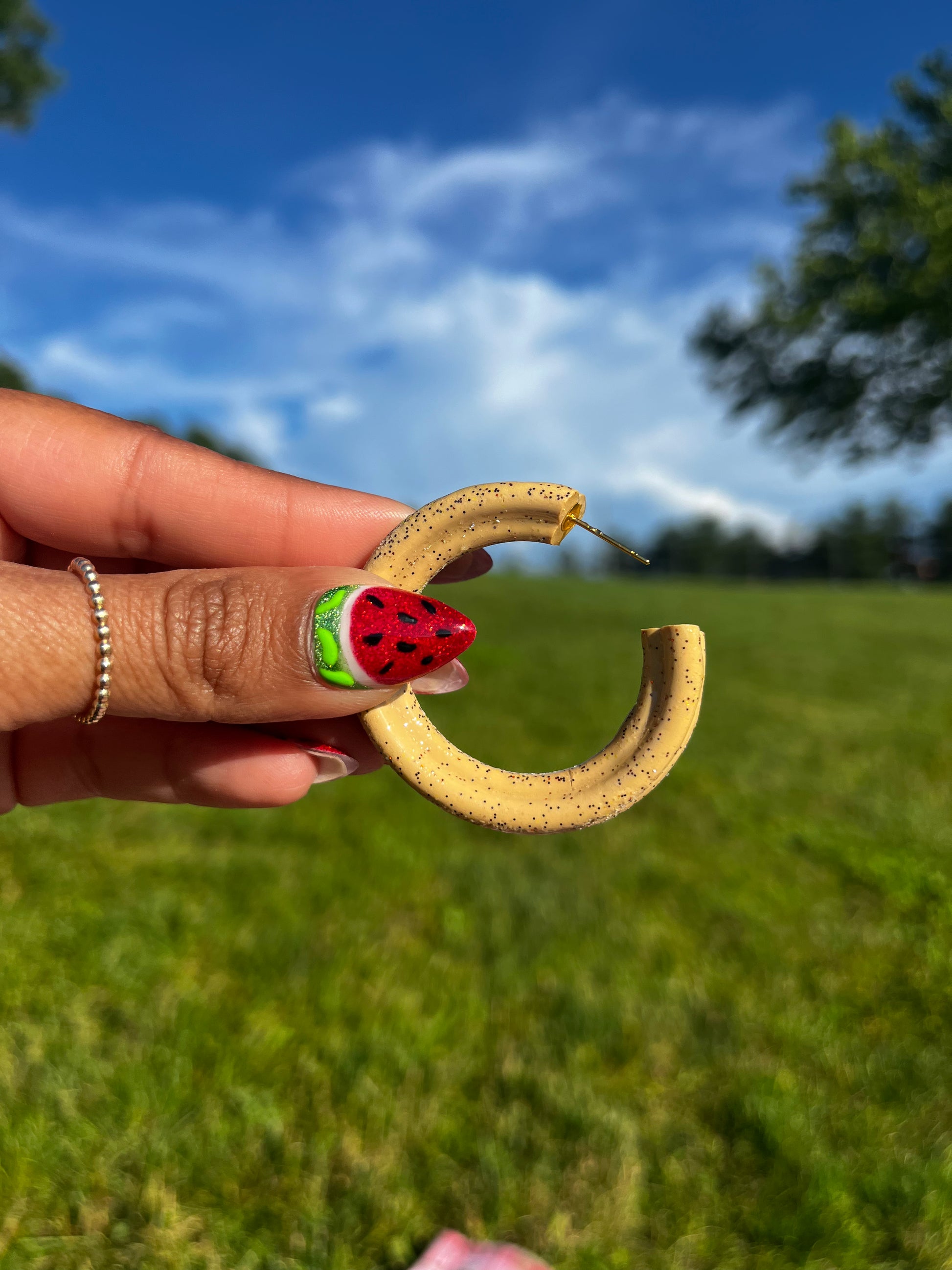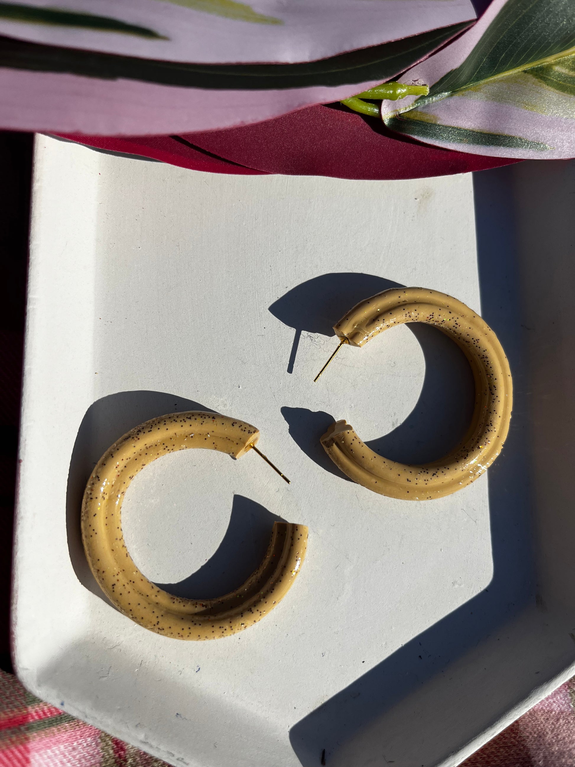 Handmade polymer clay earrings, made in central Pennsylvania. Perfect for causal, everyday wear that is simple, trendy, and distinct. They are lightweight, so much so that you might forget you are wearing them. They are made slowly and carefully by hand. Perfection is not my priority, but detail is. There may be minor flaws that add character and charm to our handmade pieces. Additionally, the piece you receive may not look identical to the one pictured as variations in the slab may create unique pieces.