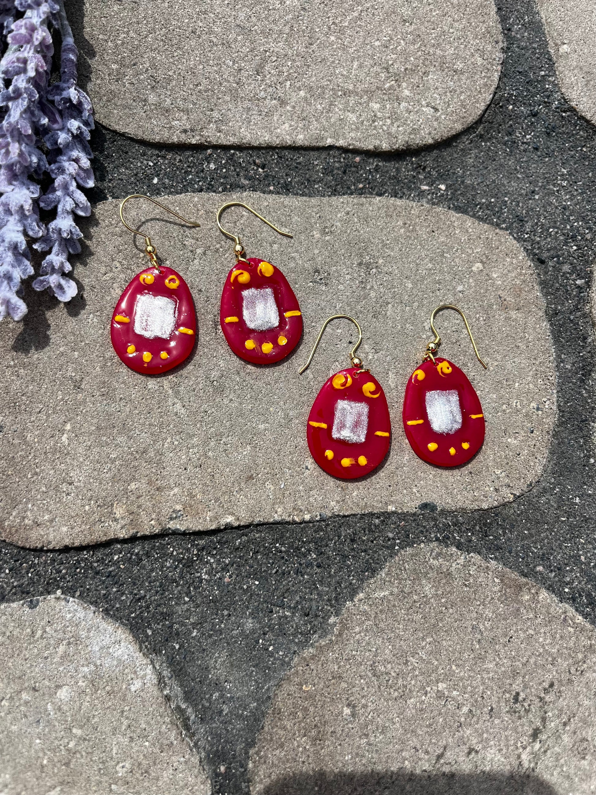 Artistically modern hand-made polymer clay earrings, made in central Pennsylvania. Perfect for causal, everyday wear that is simple, trendy, and distinct. They are lightweight, so much so that you might forget you are wearing them. They are made slowly and carefully by hand. Perfection is not my priority, but detail is. There may be minor flaws that add character and charm to our handmade pieces. Additionally, the piece you receive may not look identical to the one pictured as variations in the slab may create unique pieces.