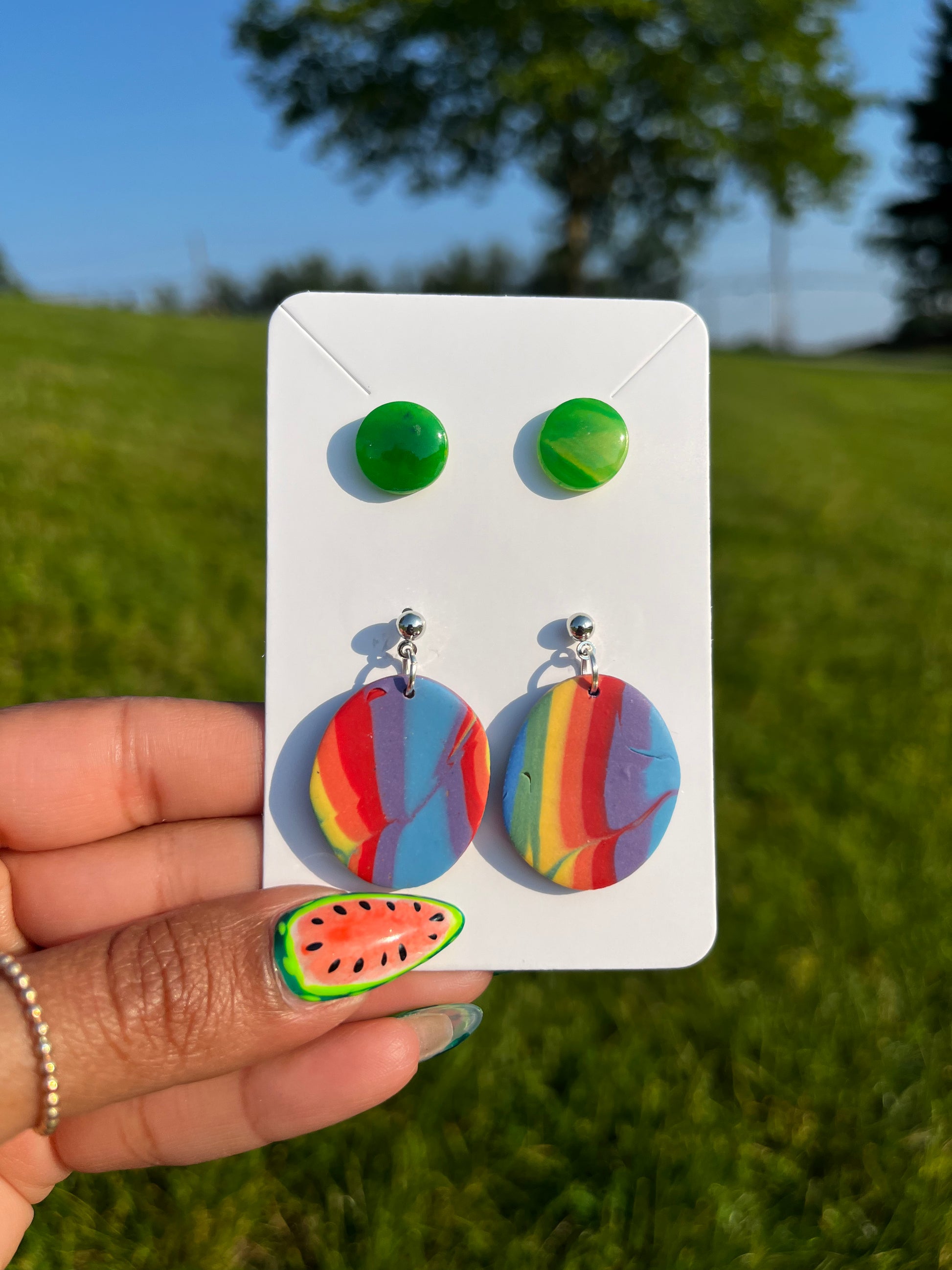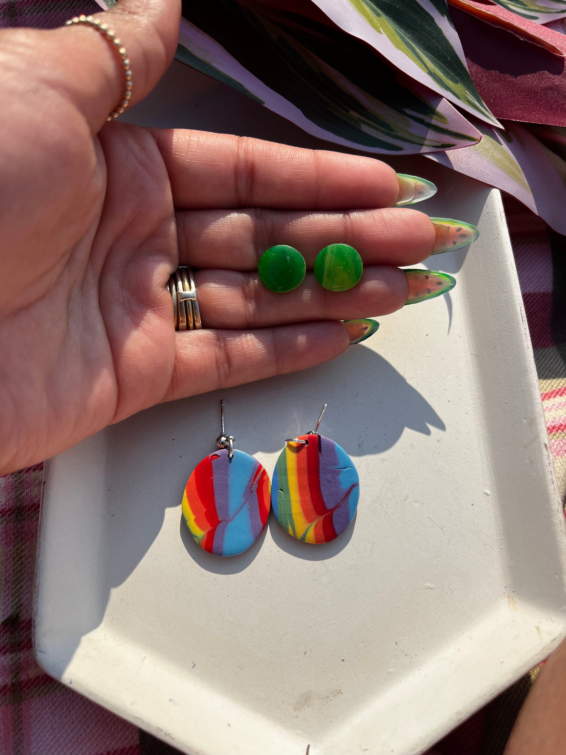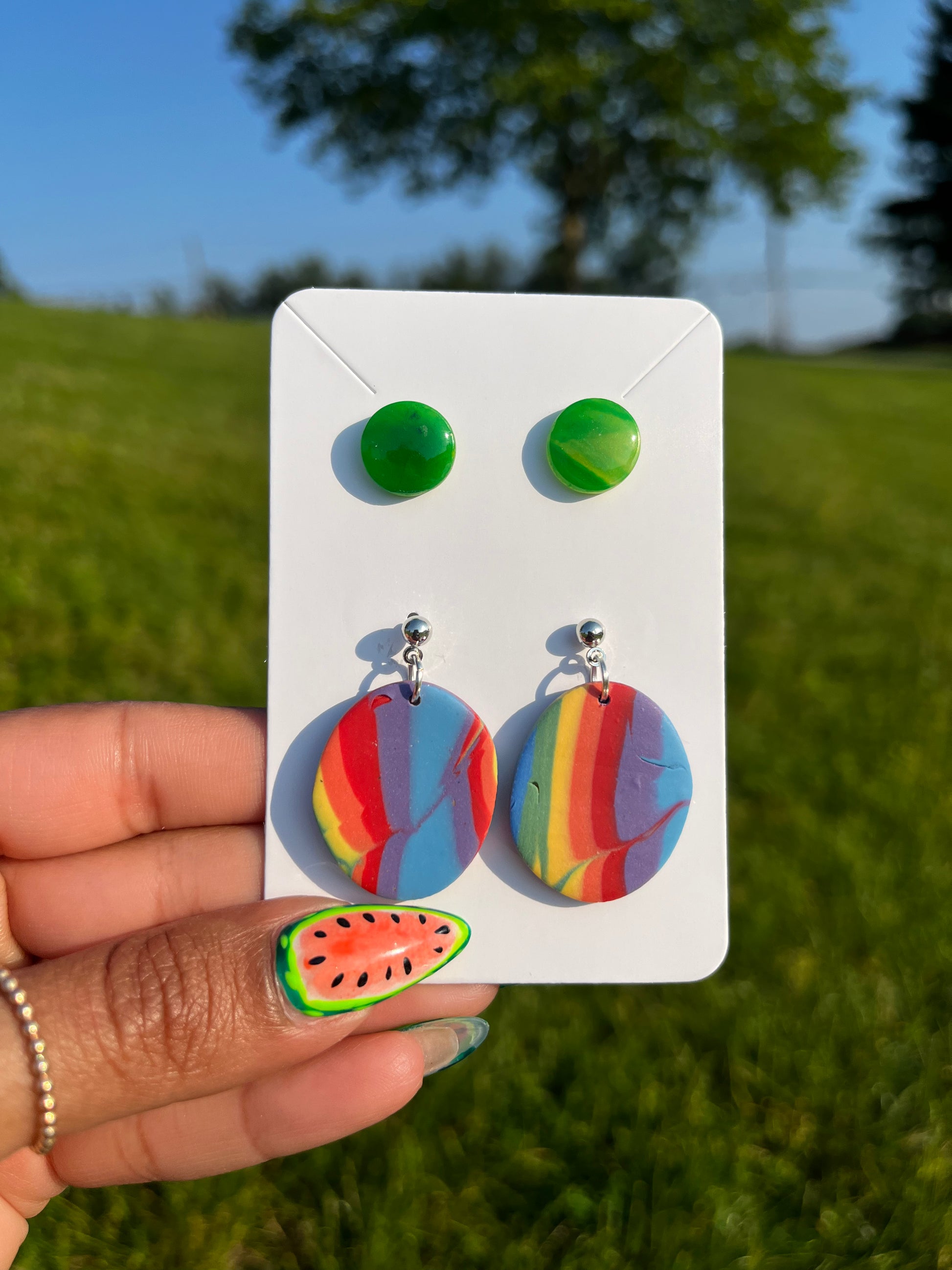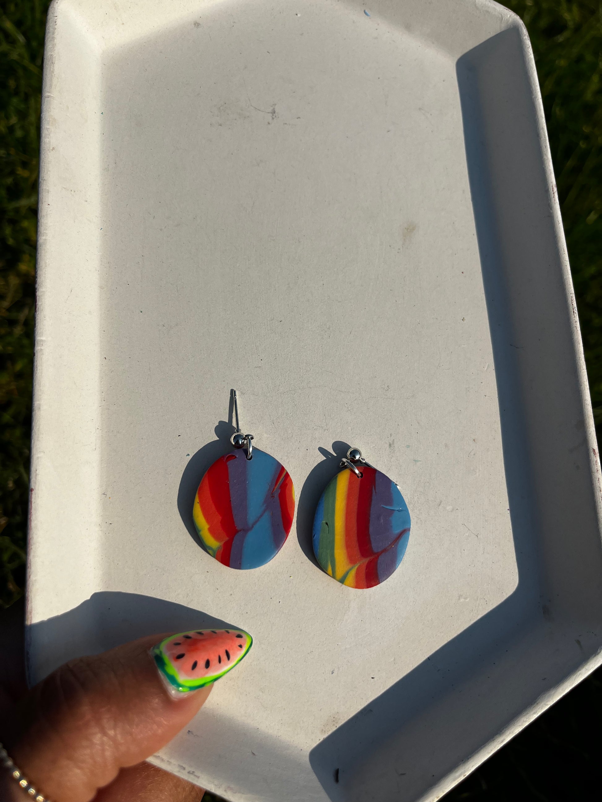 Artistically modern hand-made polymer clay earrings, made in central Pennsylvania. Perfect for causal, everyday wear that is simple, trendy, and distinct. They are lightweight, so much so that you might forget you are wearing them. They are made slowly and carefully by hand. Perfection is not my priority, but detail is. There may be minor flaws that add character and charm to our handmade pieces. Additionally, the piece you receive may not look identical to the one pictured as variations in the slab may create unique pieces.