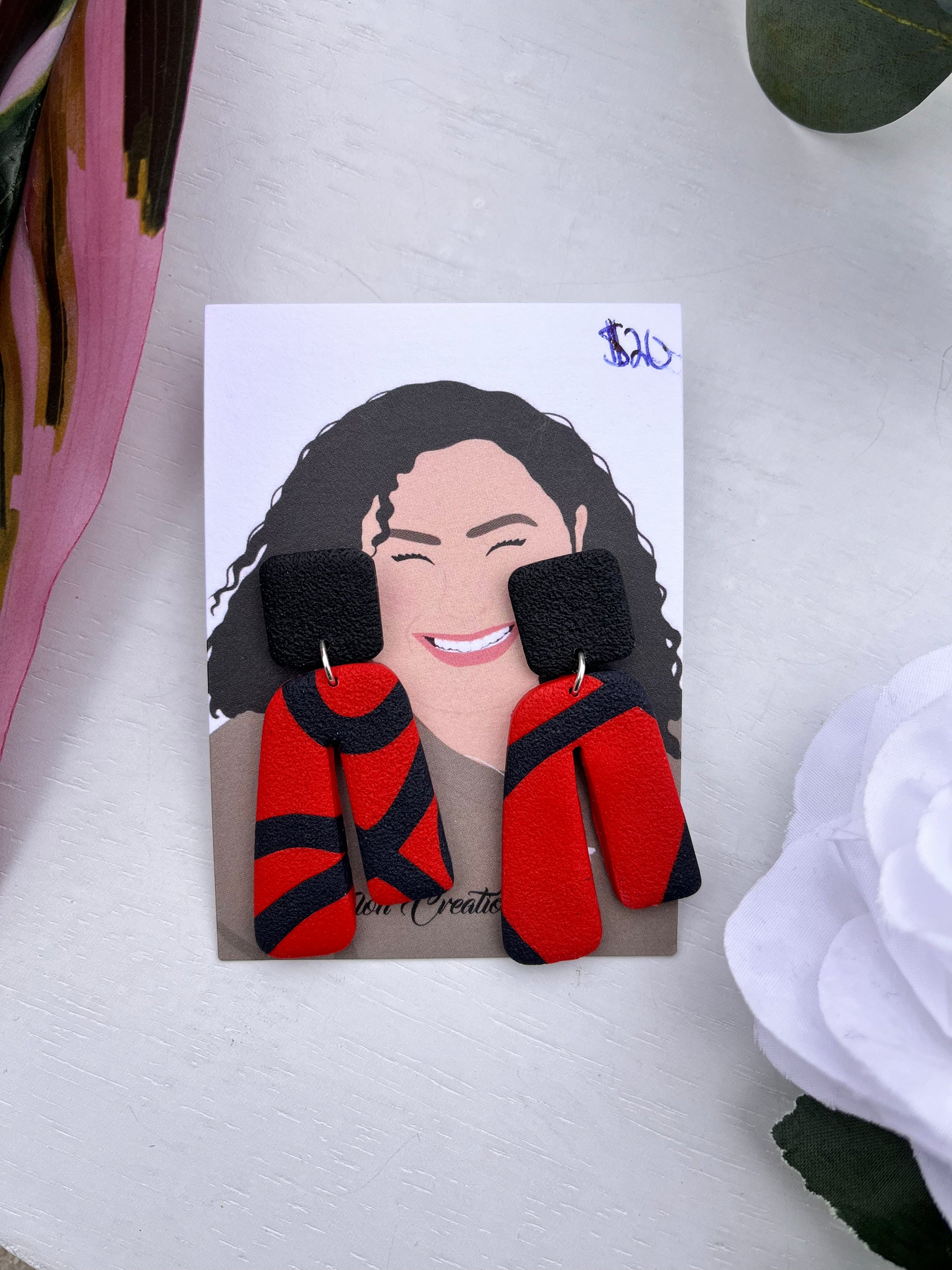 Red with Black Swirl Textured Abstract Dangles