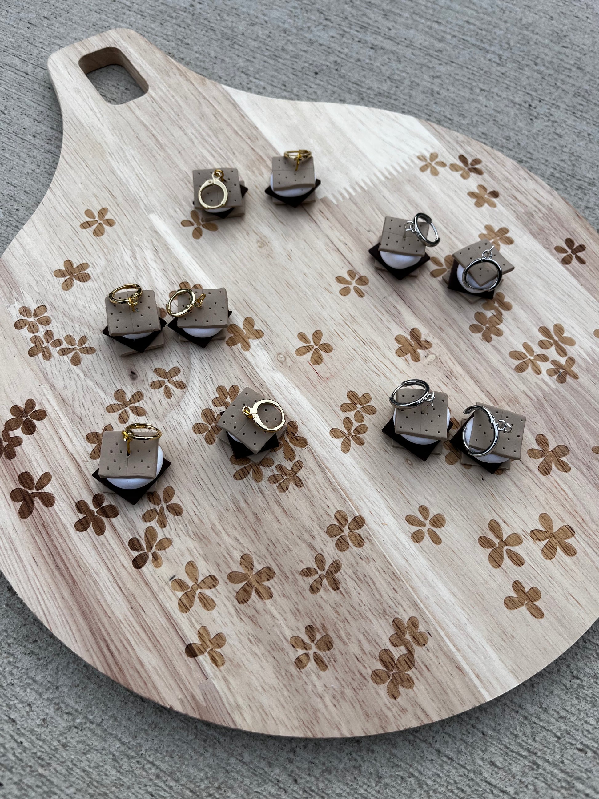 Handmade polymer clay earrings, made in central Pennsylvania. Perfect for causal, everyday wear that is simple, trendy, and distinct. They are lightweight, so much so that you might forget you are wearing them. They are made slowly and carefully by hand. Perfection is not my priority, but detail is. There may be minor flaws that add character and charm to our handmade pieces. Additionally, the piece you receive may not look identical to the one pictured as variations in the slab may create unique pieces.