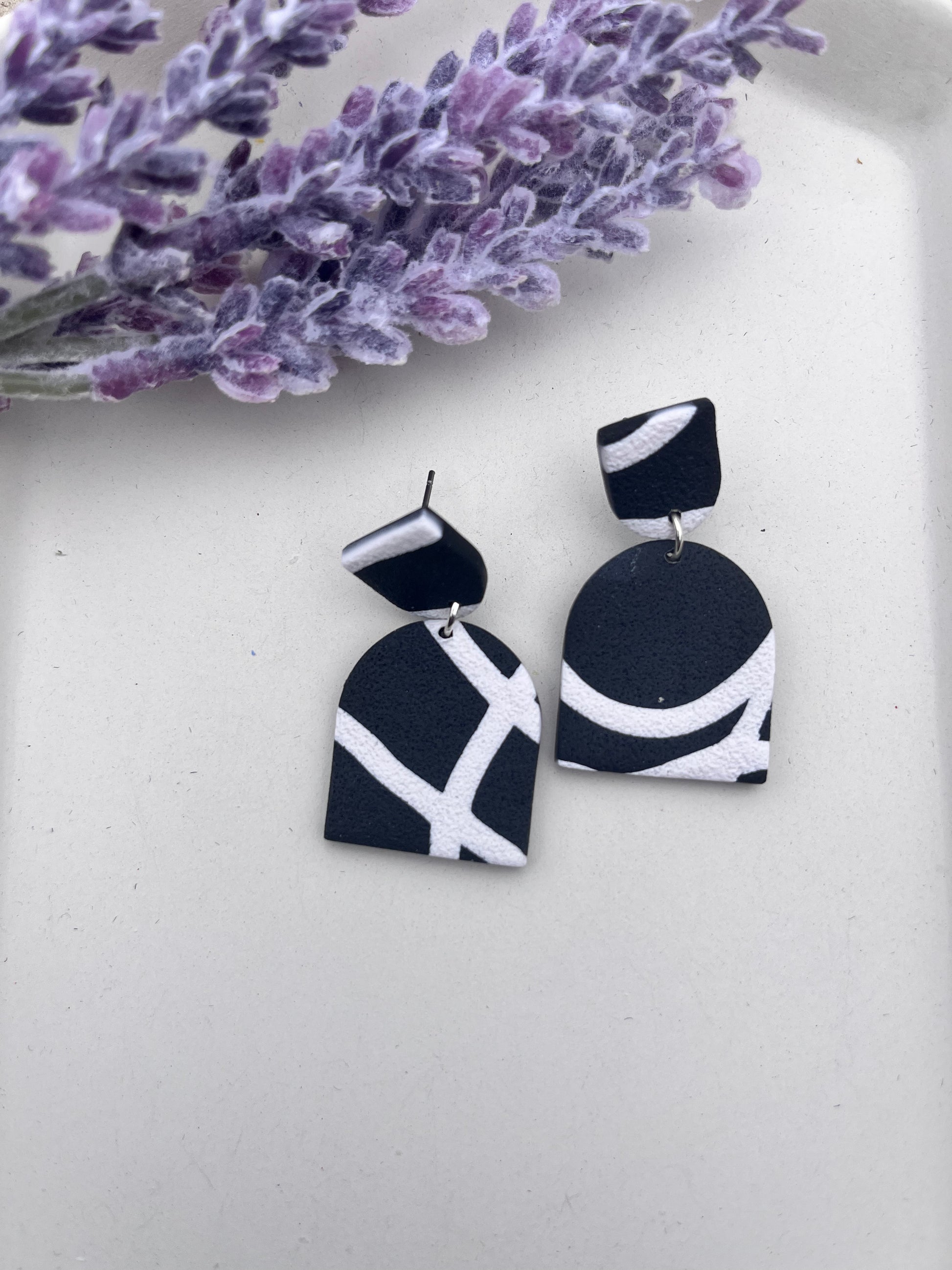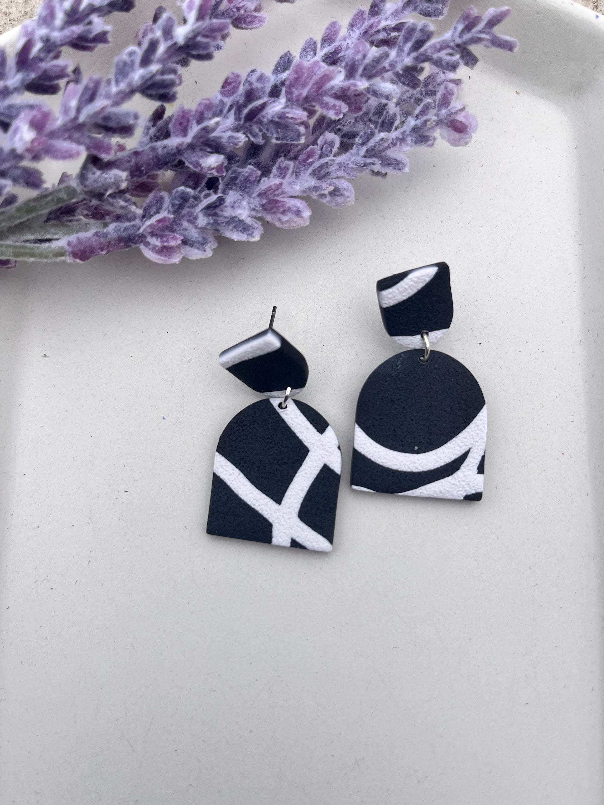 Artistically modern hand-made polymer clay earrings, made in central Pennsylvania. Perfect for causal, everyday wear that is simple, trendy, and distinct. They are lightweight, so much so that you might forget you are wearing them. They are made slowly and carefully by hand. Perfection is not my priority, but detail is. There may be minor flaws that add character and charm to our handmade pieces. Additionally, the piece you receive may not look identical to the one pictured as variations in the slab may create unique pieces.